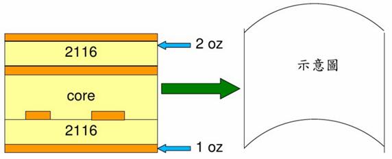 下圖為線路層成品銅厚不對(duì)稱。
